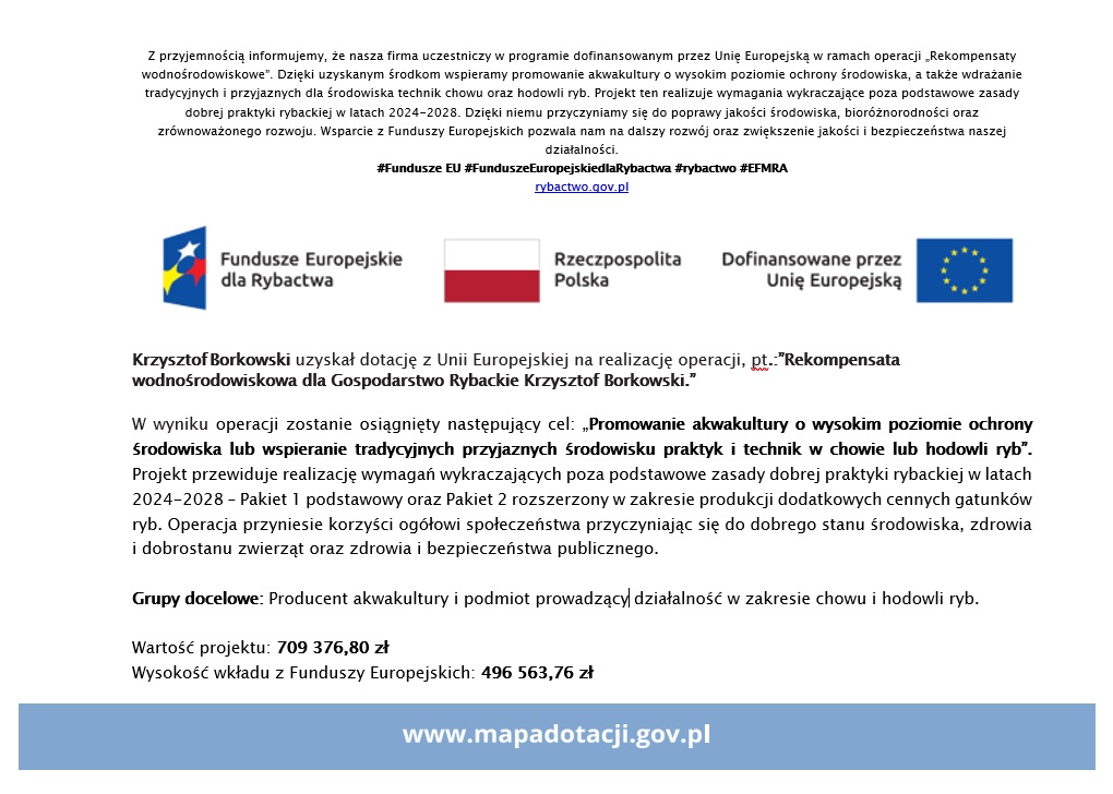Zapytanie ofertowe na budowę ziemnego stawu do hodowli ryb – magazyn ryb nr 7;